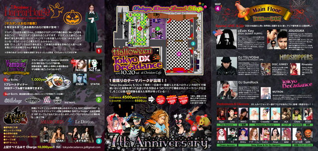 【Fast Ticket】優先的に入場できる前売り券 毎年長蛇の列ができるハロウィンデカダンス。長い列に並ばず入場できるファストチケットを発売! さらに!!今回はファストチケットをお買い求めいただくと、《 500yenディスカウント 》!! ※ドレスコードディスカウントされた価格での販売になりますので、当日のドレスコードチェックに応じ、500yen or 1000yenをエントランスにてお支払いいただきます。 販売店 □Decadance BAR 東京都新宿区新宿5-17-13 オリエンタルウェーブ9F http://ameba.jp/decadancebar/ □Bad Little Boo 原宿店 東京都渋谷区神宮前6-6-8-201 http://www.badlittleboo.com/