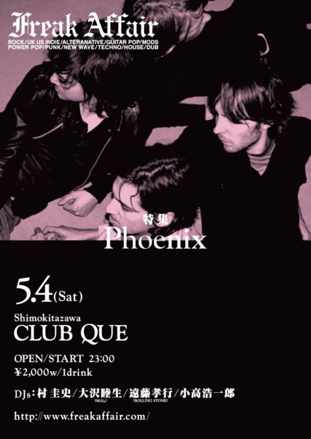 開催終了■□5/4(土)特集PHOENIX!!リアルタイムのロック・ミュージックを中心に下北沢のCLUB QUEにて月に一回のペースで行っている オールナイト・パーティ 『FREAK AFFAIR』