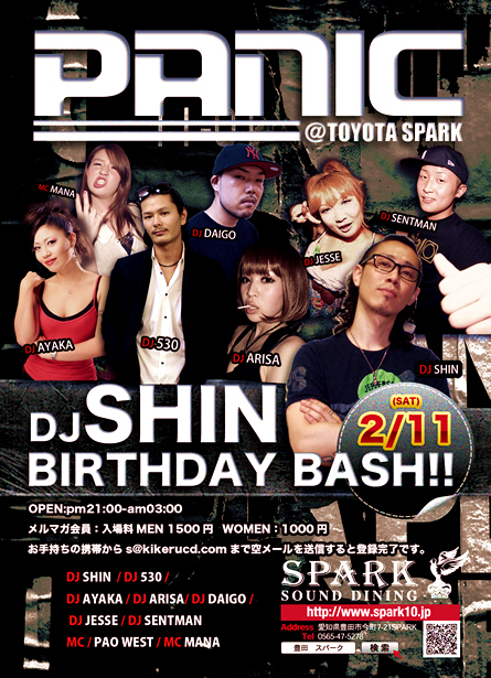 2月11土 『 PANIC 』 ☆DJ SHIN Birthday Bash ☆