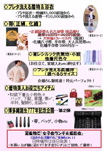 Exhibition and Sale of Washable Kimono/Yukata/Obi etc.