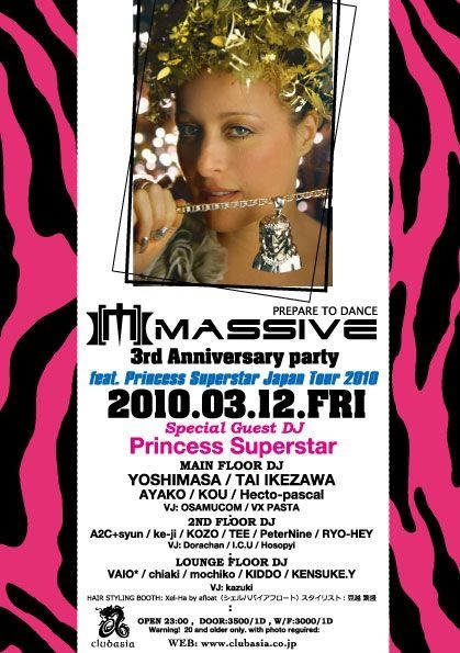 開催終了3/12(FRI)PRINCESS SUPERSTAR出演MASSIVE@ asia