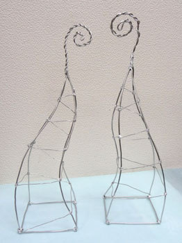 針金で形を作って和紙を貼り、