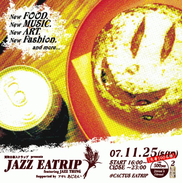 開催終了カフェイベント !! 買取古着スクラップPresents 『JAZZ EATRIP』featuring JAZZ THING Supported by アサヒ あじわい