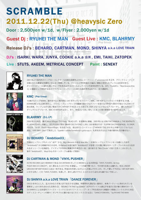 開催終了12/22(thu) Ryuhei The Man, Blahrmy, KMC出演!!!