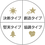 ・4つのタイプ(決断タイプ・創造タイプ・協調タイプ・堅実タイプ)がわかる