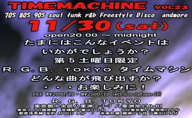 開催終了*11/29(Sat) Time Machine Vol.27@R.G.B TOKYO*