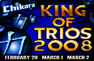 King of Trios 2008 2.29.2008 3.1.2008 3.2.2008 Friday night through Sunday afternoon Live @ The New Alhambra (formerly ECW Arena)! 7 W. Ritner Street in southern Philadelphia, PA! The action on Night 1 and Night 2 will begin at 7:00 pm Action on March 2nd will begin at 3:30 pm!