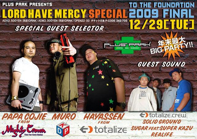 今年最後のTO THE FOUNDATION!スペシャルゲストセレクターにはなんとびっくり説明不要のDJ MR.KING OF DIGGIN MUROがPLUS PARKに初登場!そしてFAR EAST RULER世界チャンピオンMIGHTY CROWNから渋め担当PAPA COJIEが登場!TOTALIZEからはスケーターとしても実力を持つ、大人気ストリートブランドNESTA BRANDのサポート受けている名古屋のファンデーションセレクターHAYASSENが登場!そしてサウンドにはTOTALIZE CREW、ベテランサウンドSOLID GROUND、三重からSUGARが登場!この日PLUS PARKに激ヤバセレクター、サウンドが集結!音好きは絶対に外せないイベントになること間違いなし、どこにもない滅多に行われない激ヤバダンス!今年最後のTO THE FOUNDATIONをたっぷりと堪能してください。