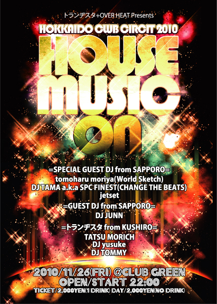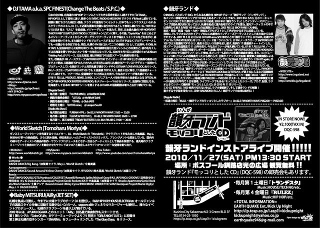 【レギュラーイベント一覧】 ・毎月第一金曜日 『NATIVE MIND』@ MoRRoW ZoNE ・毎月第一金曜日 『GLOVE AFTER THAT』 On 82.5 FM NORTH WAVE 26:00〜27:00 ・偶数月最終金曜日 『LOTUS』@ MoRRoW ZoNE ・偶数月最終日曜日 『CHNB』@ Club JADE ・奇数月土曜日 『LOTUS nano』 @ Lacquer Soul D 【Radio Mix Show】 ・毎月第四金曜日 『URBAN HYPE 』On 82.5 FM NORTH WAVE 21:00〜22:00 ・毎月第一金曜日 『GLOVE AFTER THAT』 On 82.5 FM NORTH WAVE 26:00〜27:00 ・毎月第一、第三金曜日 『FRIDAY BUTTERFLY』 On 80.4 FM AIR-G 19:00〜20:30