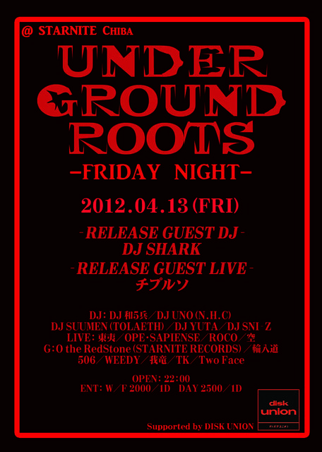 STARNITE presents UNDERGROUND ROOTS -FRIDAY NIGHT- Supported by DISK UNION