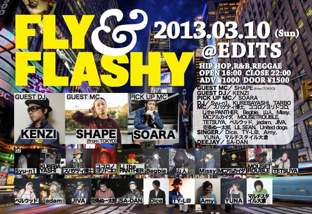 開催終了02.10@COLORS,03.10@EDITS【FLY&FLASHY】愛知/日曜、OPEN 16:00/CLOSE 22:00 ★DJ,DANCER,RAPPER,SINGER,などの出演者 随時 大大大募集中っす!