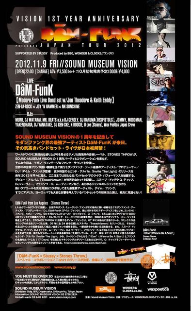 ZEN-LA-ROCK × JOY 'N HAMMER × NK-SUNSHINE ――DJs―― DâM-FunK MURO DJ WATARAI MR. BEATS a.k.a DJ CEROLY DJ DARUMA(DEXPISTOLS) MOODMAN(GODFATHER/HOUSE OF LIQUID) YAKENOHARA JOMMY DJ YANATAKE DJ KEN-SKE K-BOOGIE U-Lee (Stussy) Wax Poetics Crew