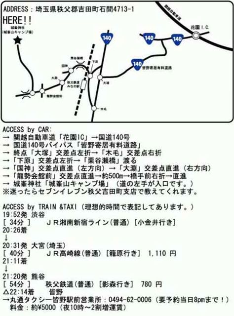 • 埼玉県 埼玉県秩父市吉田石間4713 @ 城峯山キャンプ場