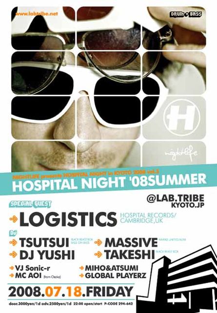 UK発のドラム&ベース/ニューソウル/クラブジャズのレーベル、HOSPITALのレーベルナイトのSUMMER SPECIAL開催決定!毎回UKより旬なHOSPITALのアーティストが登場、クラウドを熱くさせている人気PARTY!今年早くも3回目の開催となる今回は、前回のNU:TONEの実弟、関西には2年ぶり、そして初来京、”DRUM&BASS界のDAFT PUNK”との呼び声高い、LOGISTICSが登場!HOUSEミュージックの大御所、Ananda Projectの代表作にして、永遠のハウスアンセム、”Cascade Of Colours”のREMIXも手がけるなど、数々の名曲を世に輩出し続ける。ソウルフルかつタイトなビートトリックに依存症患者多数!現在UKで最も注目されているDRUM&BASS/FAST SOUL MUSICを体感せよ!