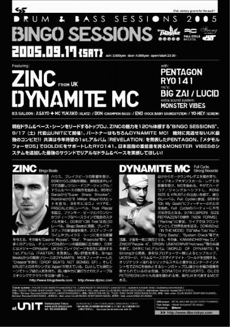現在ドラム&ベース・シーンをリードするトップDJ、ZINCの魅力を120%体感する"BINGO SESSIONS"、9/17 (土) 代官山UNITにて開催!。