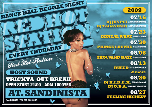 ♪8月20日(木) @Sandinista山形 “RED HOT STATION” DJ H.I.D.E.X.(Black Sugar) DJ O.B.A.(EIGHTY SECOND)