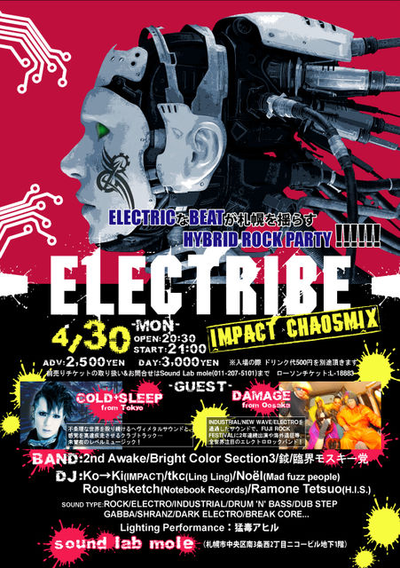 Mario: Bass Keytar | KT: Guitar | Mr. A: Vox & Sampler | CHEM: Drums | 2cH: Synth フロム ファッキン・フューチャー。狂気と電気と毒気に犯されたベースシンセが軸となるR 指定エッジーアシッド・パンク・バンド。これまでにDARREN EMERSON 、SIMIAN MOBILE DISCO などの海外ダンスアクトから、THE LOCUST、DALEK などのUS 変態バンド系や国内最前線アーティスト達ともジャンルレスに共演。2008 年にはテキサス州で行われたSXSW 2008 で大喝采を浴びる。THE POP GROUP のMARK STEWART がリミックスを手掛けるなど、インダストリアル〜 NW ・エレクトロを通過したサウンドでバンド・シーン、ダンスミュージック・シーンの両方から支持を受けている。2011年7月20日に3rd アルバム「MOUTH TO MOUTH」をリリースし、リード曲「sign of the time」が爆発的な話題となり、バンドによるダンスミュージックの到達点と高く評価される。同年、フジロックフェスティバル'11のオールナイトフジに出演。2012年の展開に注目を集めている。 info http://www.damage-web.com/http://www.thirdculture.tv/