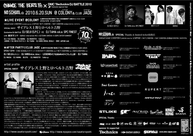 changethebeats 10th Anniversary × DMC TECHNICS DJ BATTLE 2010 HOKKAIDO Regional Heat AFTER PARTY changethebeats