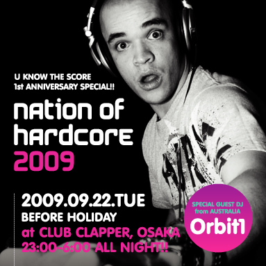 ★U KNOW THE SCORE 1st Anniversary Special!!★ 『NATION OF HARDCORE 2009』 2009年9月22日(火・祝前日) 23:00 - 6:00 @CLUB CLAPPER