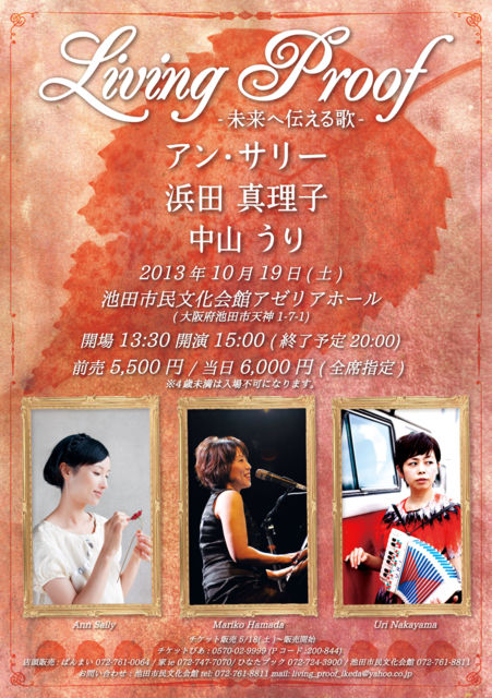 開催終了アン・サリー/浜田真理子/中山うり出演『LIVING PROOF』開催!
