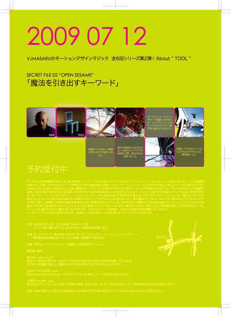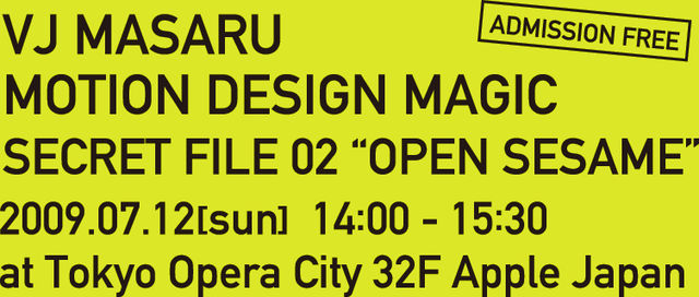 開催終了7/12 VJMASARUのモーションデザインマジック SECRET FILE02 "OPEN SESAME” 〜魔法を引き出すキーワード〜
