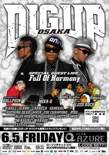 開催終了6/5(FRI)マンモスHIPHOP PARTY!!!DIG UP OSAKA@AZUREゲストにFull Of Harmony!!