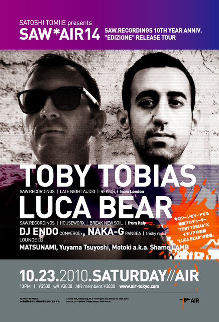 TOBY TOBIAS SAW.RECORDINGS | LATE NIGHT AUDIO | REKIDS | from London 80年代後半〜90年代初頭のイギリスRAVEカルチャーに影響を受け、ティーンエージャーの頃からシンプルなローランドのサンプラーで楽曲制作を始める。2000年にスタジオパートナーCraig 'Alexis Forge' Macculoughと出会い、その作品がLow PressingsやChiken Lipsのスティーヴ "フェラ" コーティのレーベルBearfunkからリリース。それ以降はOdori, Hi-phen, Tiny Sticks,など様々なレーベルからディープで良質な作品を発表し、Radio SlaveのレーベルREKIDSからのヒット「A Close Shave」「The Feeling」以降はリミックスが殺到。Beat Freeze, Bent, Dialectといったレーベルでリミックスを連発、Prins ThomasやThe Glimmers、Francois KからRicardo Villalobos, Tiefschwarzなど幅広いアーティストからサポートされている。REKIDSからファーストアルバム『Space Shuffle』をリリース、日本盤も発売され話題に。TOBYのサウンドはディープ・ファンク・ディスコ・ハウス、ロウ・ファイ・ディスコなどとも呼ばれ、昨年の初来日プレイではSAW@AIRのクラウドを帰らせなかった。今年SAW.RECORDINGS10周年を記念するアルバム『Edizione』に楽曲提供(5am)、また話題を呼びそうだ。