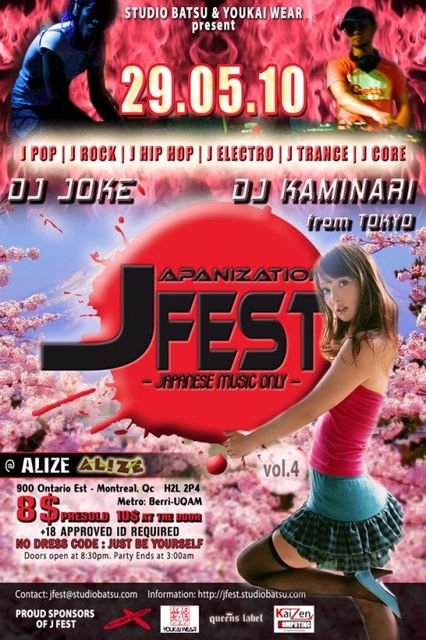 _DJ KAMINARI from Tokyo and DJ JOKE will mix all kind of J MUSIC for the pleasure of your ears. _Exclusive video contents included PV and artists exclusive messages!!! _Dance Performances _Japanese Food!!!(TBD) _Various booth and activies... _You can also improved your japanese with our cute japanese hostess !!!