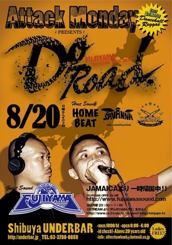 今回のATTACK MONDAY(アタマン)は何と一時帰国中のFUJIYAMA Soundがアタマンに初降臨!!!月曜日からSound Systemも入ってるアタマン!!!何と終日女性無料!!!今回はSummer Specialなので色々なサプライズゲストも有り!!!もちろんLike a JAMAICAで朝までNon stop jugglingでレギュラー陣&FUJIYAMAでお届けしますので、Don't miss it!!!