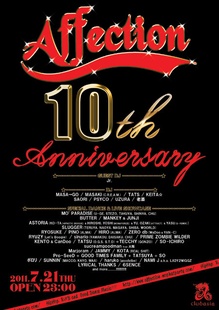 ★★★★★★★★★★★★★★★★★★★★★★★★★★★★★★★★★ 2011.07/21(thu) Affection 10th Anniversary Special @clubasia HipHop, R&B and Good Dance Music!!! ★★★★★★★★★★★★★★★★★★★★★★★★★★★★★★★★★