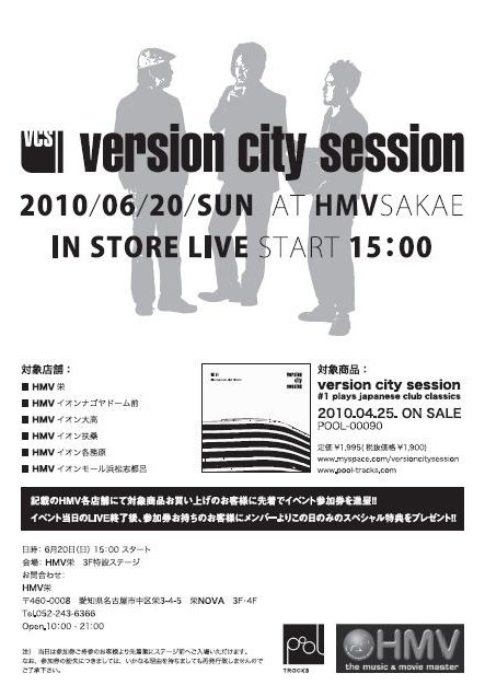 開催終了【6月20日HMV栄】version city session インストア・ライブ!!