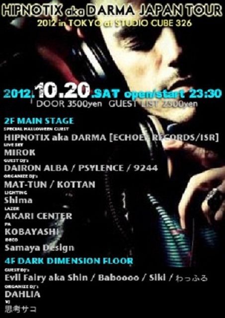 開催終了10/20(土)◆HIPNOTIX aka DARMA JAPAN TOUR 2012 TOKYO◆@CUBE326