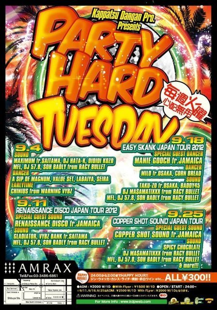 開催終了9/25(火)@渋谷AMRAX 【 PARTY HARD TUESDAY 】