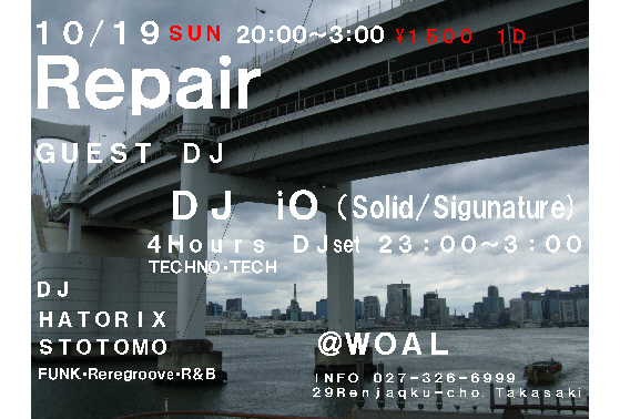 10/19(Sun)に高崎WOALにて行われるRepair にGuestDJとして