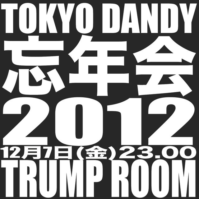 TOKYO DANDY have thrown some of the biggest and most fun parties this year at Trump Room in Shibuya. On Friday 7th December we’re returning for one more night & ‘BONENKAI’, our annual end of year party. Come and celebrate the end of 2012, and look forward to 2013, together with the most exciting of Tokyo’s music selectors.