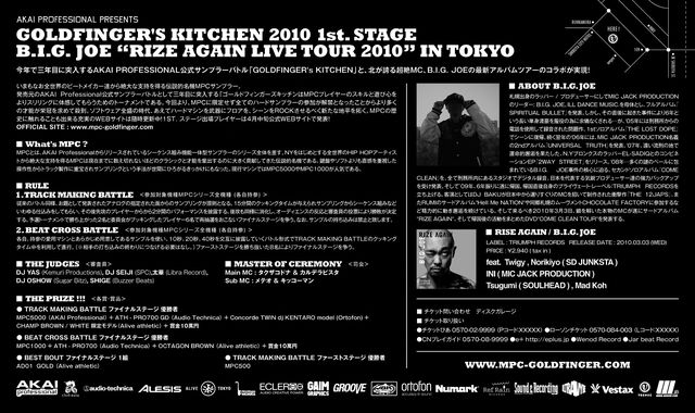 今年で三年目に突入するAKAI PROFESSIONAL公式サンプラーバトル「GOLDFINGER's KITCHEN」と、北が誇る超絶MC、B.I.G JOEの最新アルバムツアーのコラボが実現!