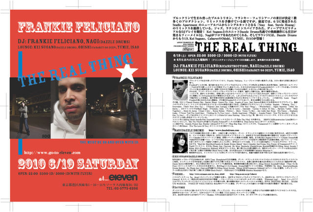 [Frankie Feliciano: フランキー・フェリシアーノ] ブルックリンで生まれ育ったプエルトリカン、Frankie Feliciano。ミュージシャンの多い家系だった為、小さい頃から音楽に囲まれて育つ。 Frankieが10才の頃、彼の家のあるブルックリンではのちにヒップホップと呼ばれる音楽が人気を呼び始め、近所のホームパーティーではDJがその新 しいスタイルの音楽をプレイし始めていた。たまたまDJを見かけたFrankieは2台のターンテーブルを使ってのそのプレイに多大な興味を持つが、実際 に自分の手で体験してみるのは彼が14才になった時の事であった。 それ以来、アンダーグラウンドのヒップホップラジオショーを聴き、録音した物をまね、夢中で練習を重ねる。 1986年、彼が16才の時に、音楽に詳しい友人からハウスミュージックについて知らされるが、当時ヒップホップとフリースタイルに傾倒していた Frankieはまるで興味をもたなかった。 しかし引きずられるようにしてつれていかれたハウスミュージックのクラブで彼が耳にした音楽は、彼の音楽の 世界を180度回転させるのに充分なインパクトをもっていた。この夜のDJ、Louie VegaとFrankieの間に生まれた友人関係は、その後のFrankieのキャリアにおいて、多大な影響を与える事になる。 その後、DJとして Sound Factory Bar、Dancec Ritual、Centro Fly、Cielo、Angels of Love、Soul Heavenを始めとする世界中のクラブでプレイし、数多くのプロダクション/リミックスを手がけるようになったのは周知の通りである。代表的なプロダク ションとしてはKim English 「Missing You」、Innervision 「Don't Ever Give Up」、『Abstract Jazz Lounge』に収録された「The Real Thing」、「Wonderland」、Gigolo Supreme 「After the Storm」、またリミックスではBlack Magic 「Freedom」India 「To Be In Love」、Osunlade 「Cantos A Ochun Et Oya」、Barbara Tucker 「Stay Together」、Marie St. James 「Closer I Get」、Kenny Bobian 「Father」、Myra 「Come To Me」、Jon Cutler feat. Eman 「It's Yours」、Stephanie Cooke 「I Never Told You Could Stay」「Holding On To Your Love」、Studio Apartment 「Flight」、Ananda Project 「Into The Sunrise」、Silva 「One To One」、そしてMAWもリミックスし大ヒットしたRain/Lil Loius Painting 「Give It Up」等、数々のヒットレコードや、クラシックスとなりえるクオリティの高い作品をリリースしている。 2002年には[King Street Sounds/Nite Grooves]の人気ミックスCDシリーズ『Mix The Vibe』を手掛ける。 2005年には[Ricanstruction Label]初のレーベルコンピにして、Mix The Vibeから3年振りにFrankie Feliianoがミックスを手掛ける『Real Series Vol.1』がリリースされた。 ここ最近では、Ananda Project feat. Heather Johnsonのクラシック「Kiss Kiss Kiss」のリミックスや、Traxsourceにて10週間ナンバー1をキープした大ヒット曲D'Moov 「For The Love Of You」のリミックスを手掛けている。