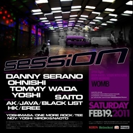GUEST: DANNY SERRANO RESIDENTS : OHNISHI, TOMMY WADA , YOSHI LIGHTING+LASER: SAITO SESSION DEEP: AK, JAVA, SHIGETO TAKAHASHI, HK, EREE RACOUS LOUNGE: YOSHIMASA, ONE MORE ROCK, TEE, NOV,YO5HI, HIROKI&NAOTO