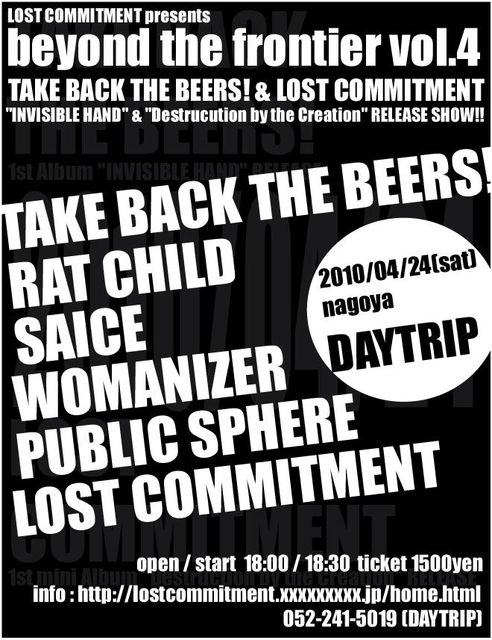 -TAKE BACK THE BEERS!「INVISIBLE HAND」 & LOST COMMITMENT「DESTRUCTION by the CREATION」release show-