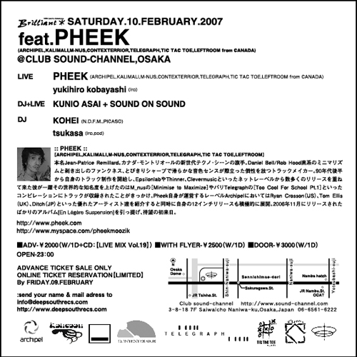 今回はm_nus,Telegraphからもリリースする変態音満載爽やか青年Pheekがライヴで登場!!!