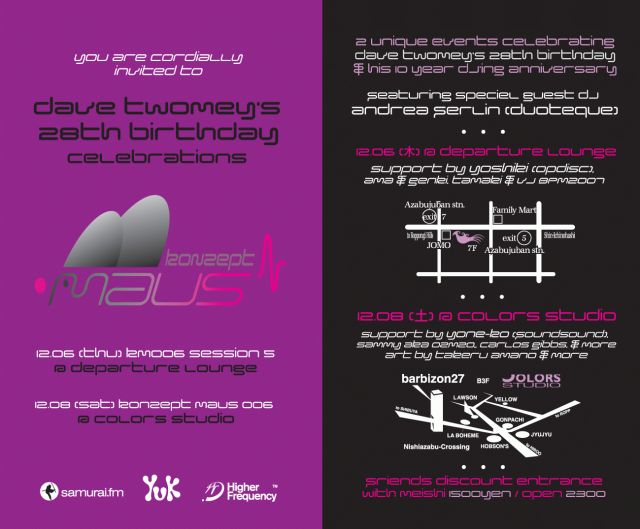 2007/12/08(土) KONZEPT MAUS 006 AKA DAVE TWOMEY'S BIRTHDAY PARTY @ COLORS STUDIO, 西麻布