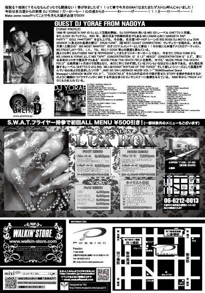 1998年GANGSTA RAPのDJとして活動を開始。2001年、彼の旧友で相棒的存在でもあるMILLKMANと共にGANGSTA RAP PARTY ”SOUL F**KTORY”を立ち上げる。その後、毎週水曜日”DRUG FUNK”(現WEST COAST CONNECTION)、毎月第1土曜日の”052 MOST WANTED”等でレギュラーを勤め、その他にも本場アメリカのアーティスト、WC,FROST,JAY-TEE、L.V.、TQ、BILLY COOK等との競演も重ねている。 誰よりも早くSOUTHSIDE RAPをREPRESENTしてきたオリジネーターの一人である彼も、2004年に惜しまれつつもDJとしての活動に終止符を打つ。だが、彼の音楽に対する情熱はとどまる事を知らず深まるばかりで、2006年にはDJ YORAE復活!