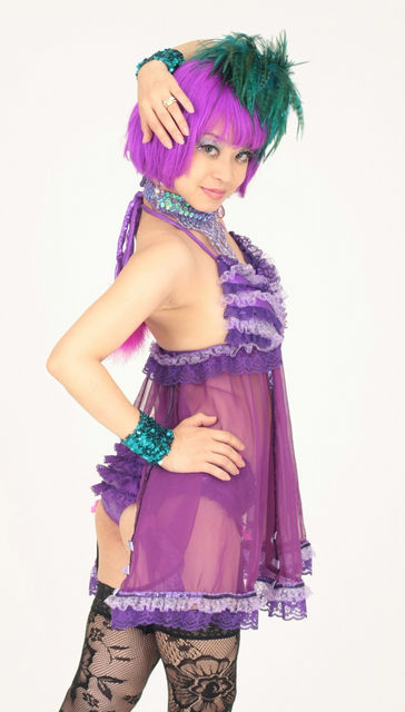 She is the leader of Japanese burlesque troupe "MURASAKi BABYDOLL". She has directed and choreographed Muraskai Babydoll since 2003. As a teenager she was a rhythmic gymnastics player and after High School she learned contemporary dance and Botoh at University. She describes her style as an old musical with a fever. In 2007 Violet Eva won "Best Debut"act at the Exotic World Competition in Las Vegas.