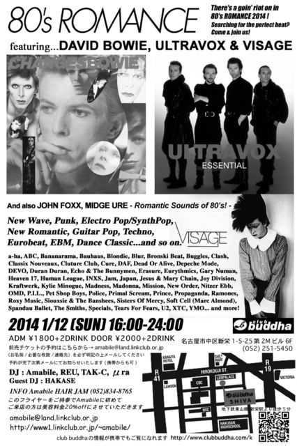 ■ 1/12 (日) 80's ROMANCE featuring DAVID BOWIE, ULTRAVOX & VISAGE