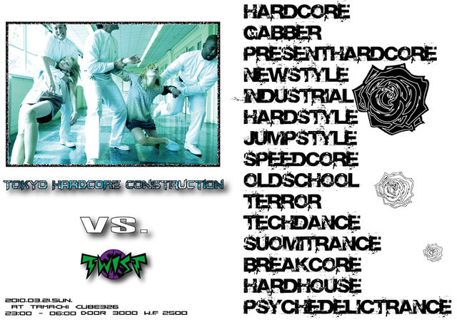 ▼T.H.C DJs http://mixi.jp/view_community.pl?id=4065997 Lunch (TOKYO HARDCORE CONSTRUCTION/S.H.C.) 狗神 (NIGHTMARELAND/HARDCORE NITRO) DJ WILD PARTY (赤線企画/PPP) DJ Technetium vs. MC Tylant (Cis-Trance) Kanon (Party Pill) LALA (Love Scream Terror/Death Inferno Eternal) Redd (Death Inferno Eternal) Caress128 (HARDCORE NITRO) A10 Device (HARDCORE NITRO)
