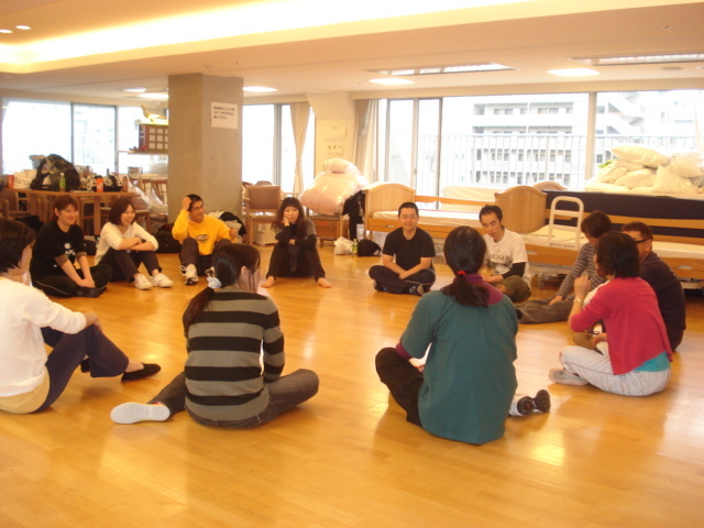 講師にNPO法人日本クリニクラウン協会の塚原氏を迎え、自分のクラウン的要素を探りながら、クラウンの遊びの世界で自分自身を解放してみる。
