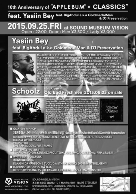 開催終了10th Anniversary of Applebum & CLASSICS feat. Yasiin Bey (ex .Mos Def)