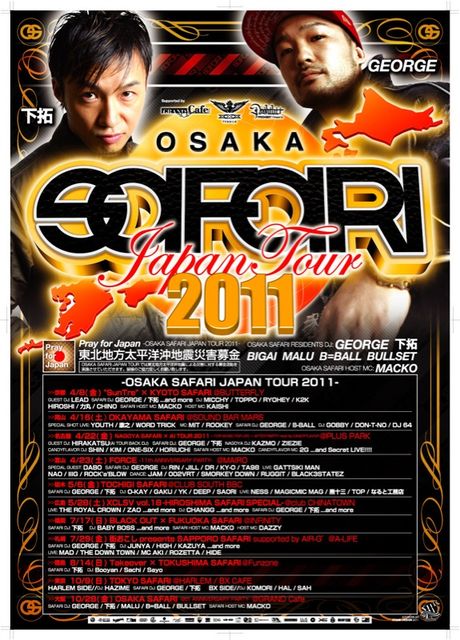 「関西を代表するDJ GEORGE,下拓を中心にOSAKA GRAND GAFEにて開催され、関西のみならず、東京でも注目を浴びる関西最大のマンモスHIP HOPパーティー![Blog] http://ameblo.jp/osakasafari/
