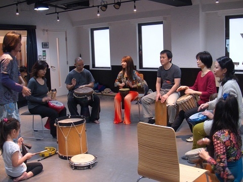内容:ストンプやボディパーカッション、ボイスパーカッションなどのリズムワークとジャンベやダラブッカ、カホンなどを使ったドラムワークなど