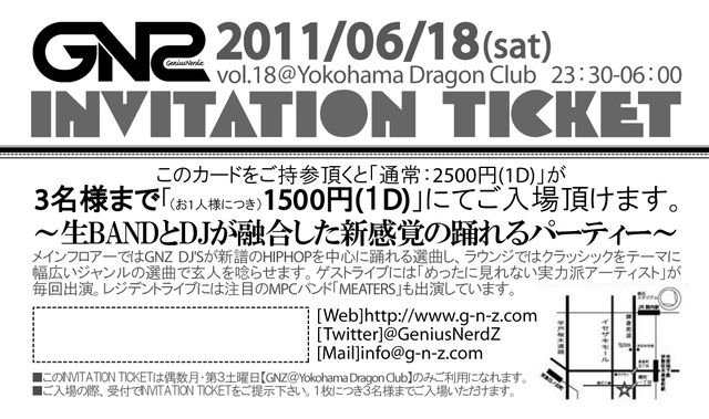 DRAGON CLUBの看板イベント。第三土曜日は奇数月が「PAYBACK」偶数月は「GNZ(グーニーズ)」となっていて「DJ」を中心とした内容ではありつつもバンドを導入するなど、毎回新たな試みを行い、単なるHIPHOPのクラブイベントとしてではなく、各ジャンルの人たちから注目をされている内容になっています。